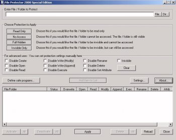 File Protector will keep files/folders safe from unintentional deletion, from prying eyes, or even from some virus attacks. It works in the background, protecting and or hiding your files/folders, keeping them safe from unauthorized access. |